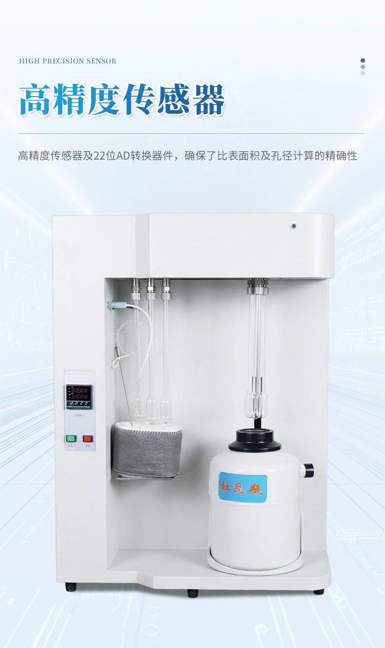 多個高精度的傳感器及22位的AD轉(zhuǎn)換器件,確保了比表面積及孔徑計(jì)算的精確性。