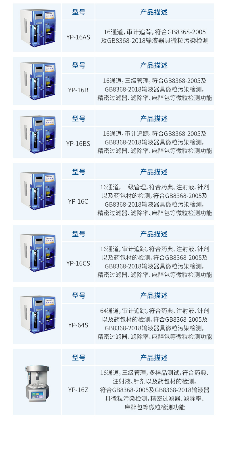 ●滿足《中國藥典》可直接檢測注射液、無菌粉、輸液器具及濾除率的微粒含量及大小,符合GB8368-2005及GB8668-2018標準。