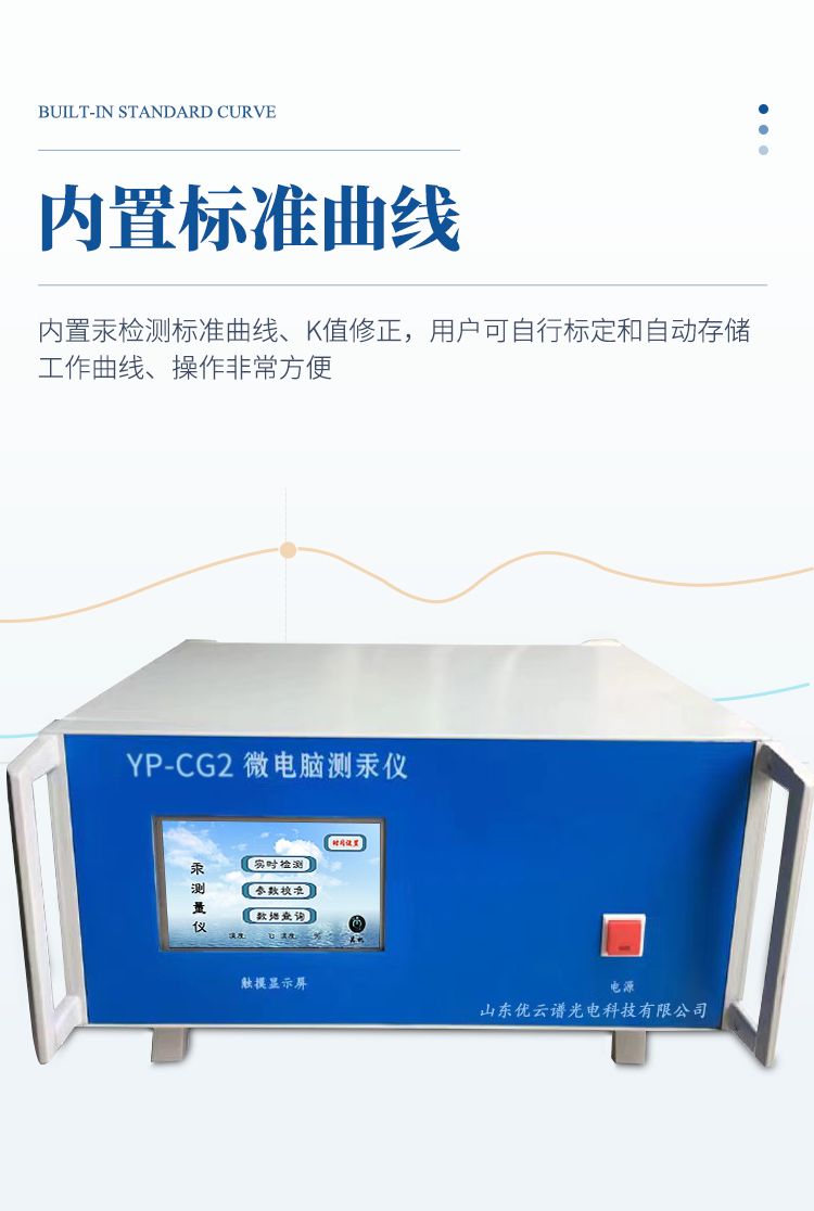 2、內(nèi)置汞檢測標(biāo)準(zhǔn)曲線,用戶可自行標(biāo)定和自動存儲工作曲線非常方便。