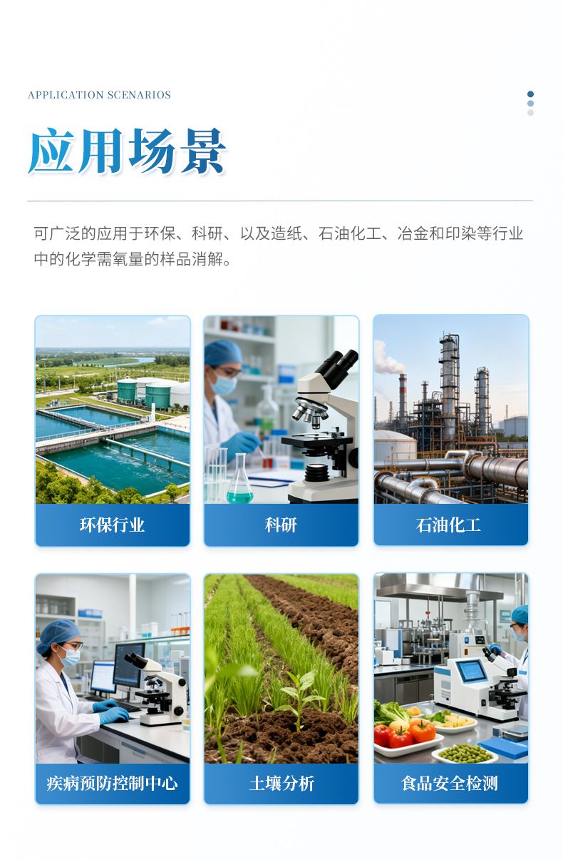 化學需氧量(COD)智能回流消解器遵循了國家標準《HJ828-2017 水質 化學需氧量的測定 重鉻酸鹽法》的基本原則,保證了回流加熱微沸2小時的消解操作,試劑溶液的配制和加入量與國標法一致,確保可靠準確的分析結果。