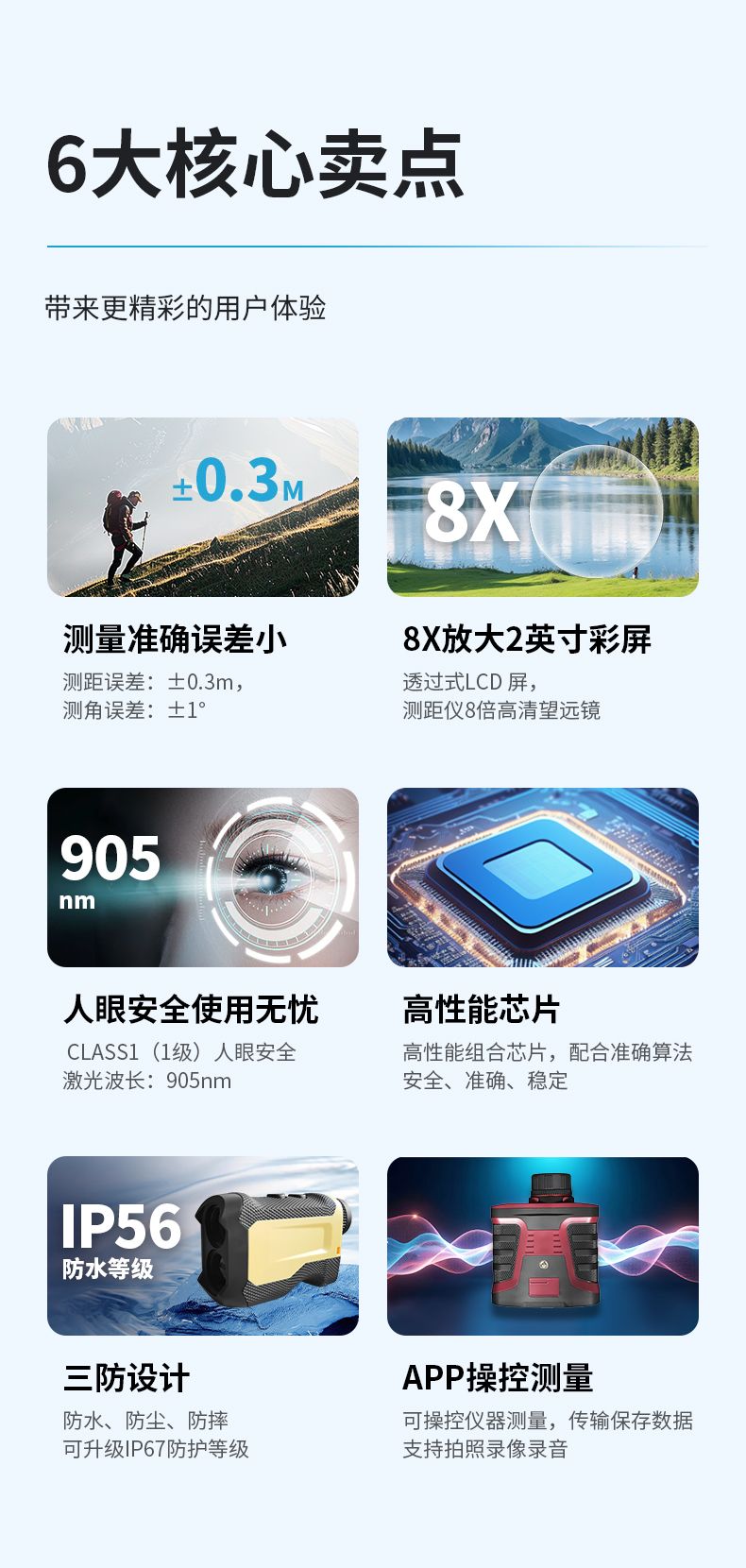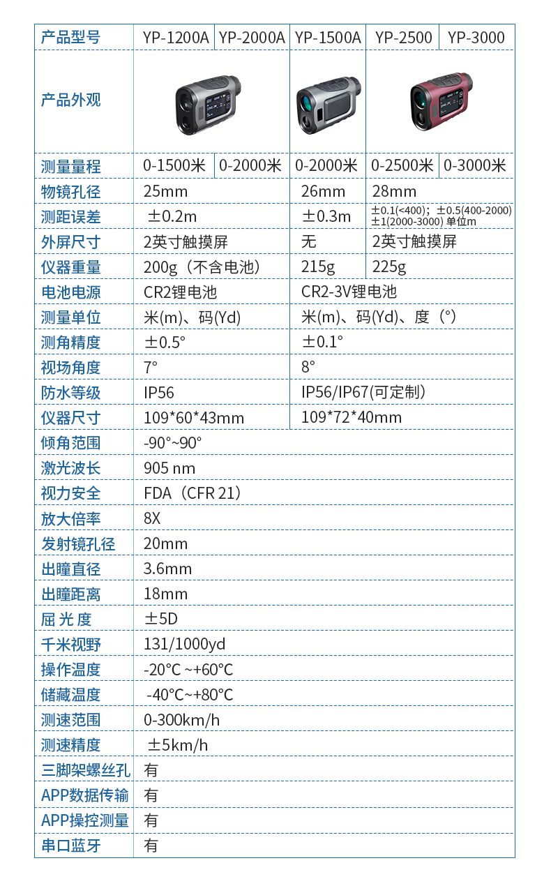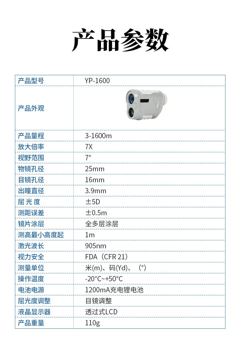 產(chǎn)品功能:測距/測角/測速/高爾夫彈道距離/兩點(diǎn)測高