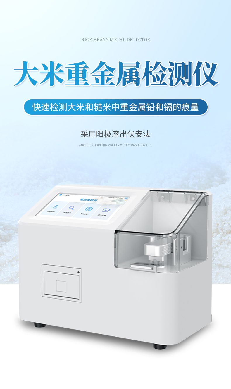 伏安法重金屬檢測儀(糧食重金屬速測儀)是一款高精度的電化學(xué)分析設(shè)備,專用于檢測大米和糙米中重金屬鉛、鎘的含量。該儀器通過一次性三電極片陽極溶出伏安法實(shí)現(xiàn)快速、準(zhǔn)確的重金屬檢測,配合絲網(wǎng)印刷電極耗材和簡易的樣本前處理方式,可實(shí)現(xiàn)大米和糙米中重金屬鉛、鎘的快速定量檢測。
