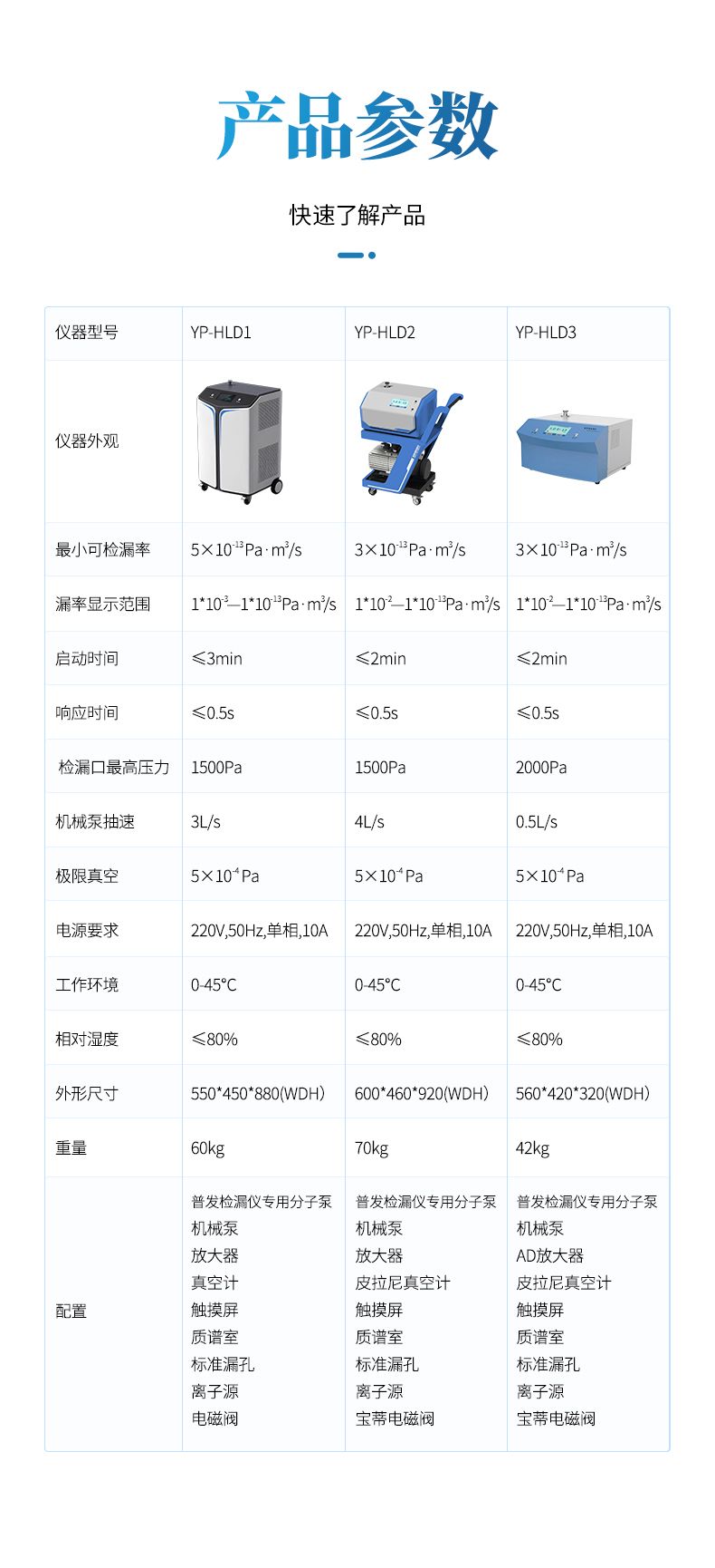 1. 最小可檢漏率:5×10-13Pa·m3/s