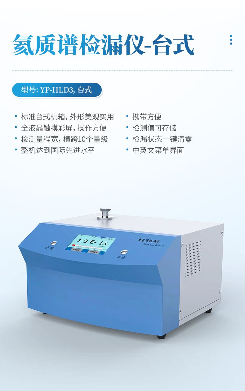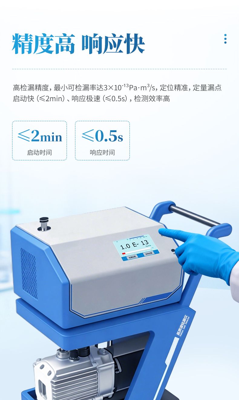 氦質(zhì)譜檢漏儀是采用質(zhì)譜學(xué)原理、以氦氣為示漏氣體的高精度無(wú)損檢漏設(shè)備,憑借氦氣大氣含量低、質(zhì)荷比特征鮮明的優(yōu)勢(shì),實(shí)現(xiàn)超高靈敏度檢漏,可精準(zhǔn)定位并定量漏點(diǎn)。設(shè)備支持真空噴氦、吸槍掃描、背壓累積等多種檢漏模式,適配真空 / 帶壓容器、密封組件、精密器件等不同檢測(cè)需求,廣泛應(yīng)用于航天航空、半導(dǎo)體、汽車、電子醫(yī)療等領(lǐng)域,是高端制造與精密工業(yè)中密封檢測(cè)的核心設(shè)備。