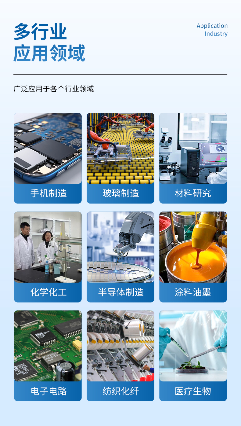 可廣泛應用于材料研究、工業涂層、手機制造、生物醫藥、電子電路、紡織纖維、石油開采、航空航天等領域。