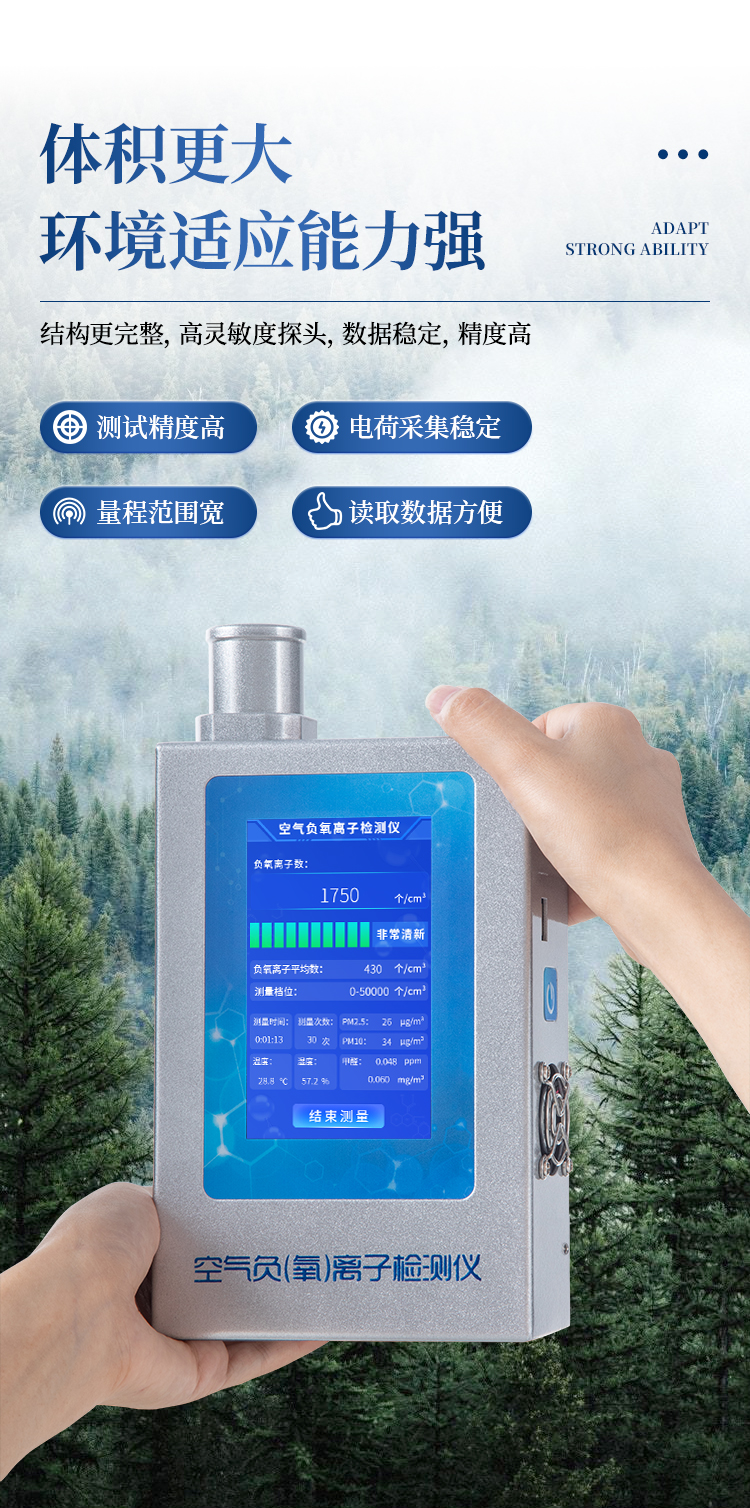 實時測量空氣中的大氣負氧離子濃度、甲醛濃度、pm2.5、pm10,是環境監測、納米涂料、負離子保健產品、負離子家裝建材、室內檢測、空氣治理、空氣凈化器及其制品負離子濃度的測量與演示的優選工具。
