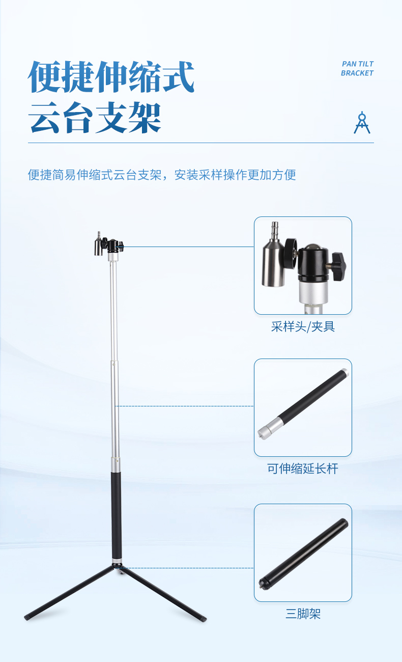 11、便捷簡(jiǎn)易伸縮式云臺(tái)支架,安裝采樣操作更加方便。
