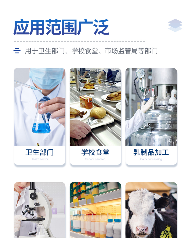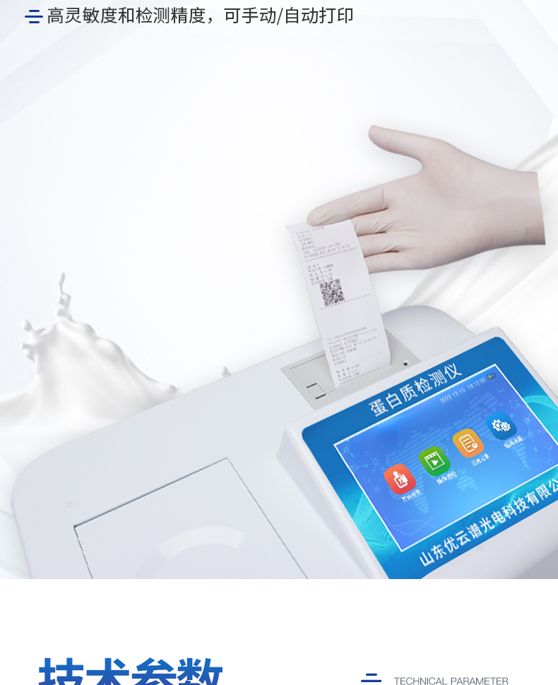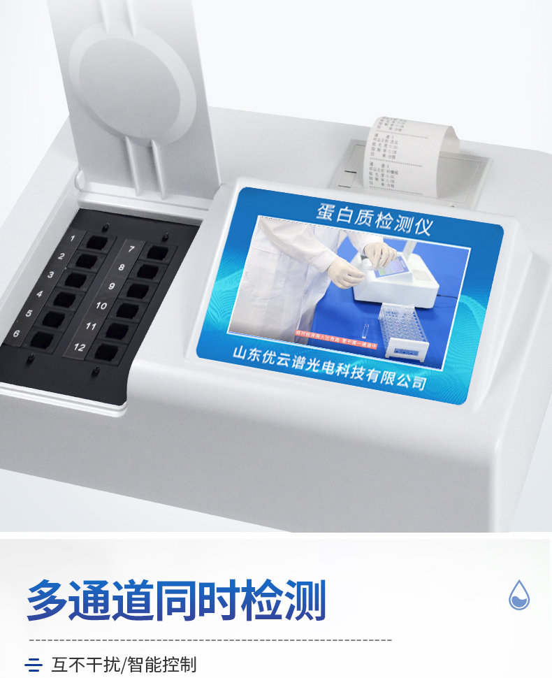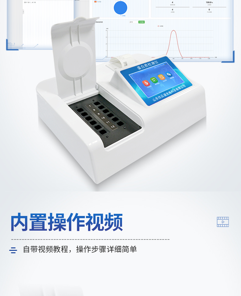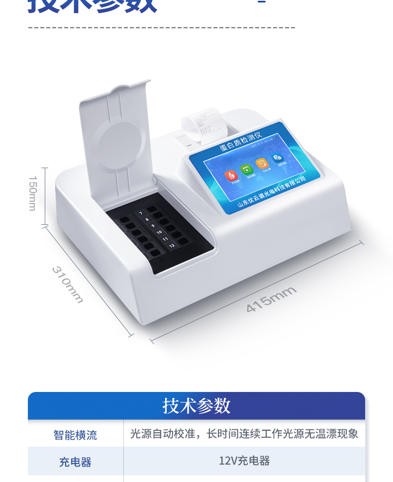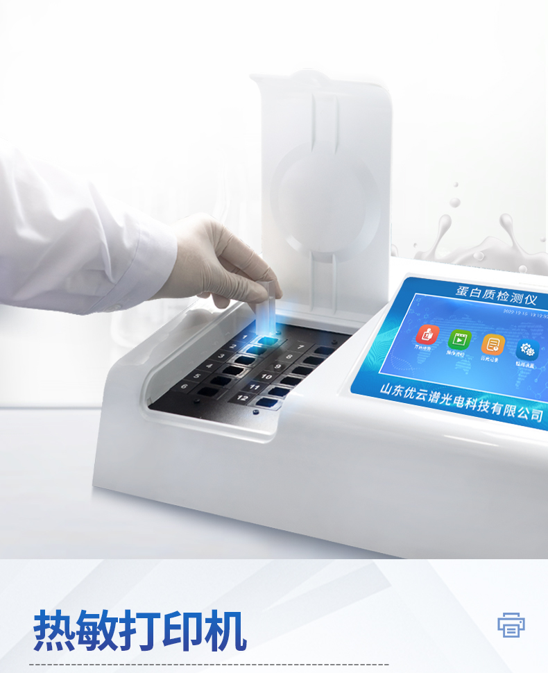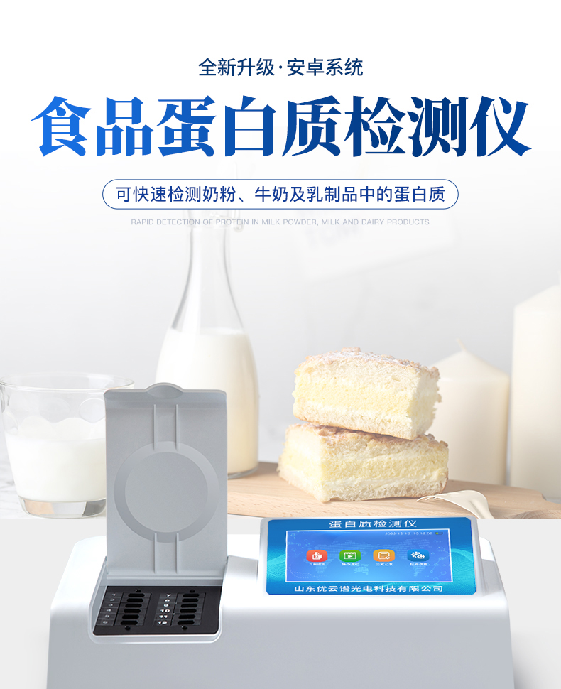 檢測項目:可快速檢測奶粉、牛奶及乳制品中的蛋白質,儀器預留其他項目檢測程序和端口,根據日后需求可方便的自主增加檢測項目。