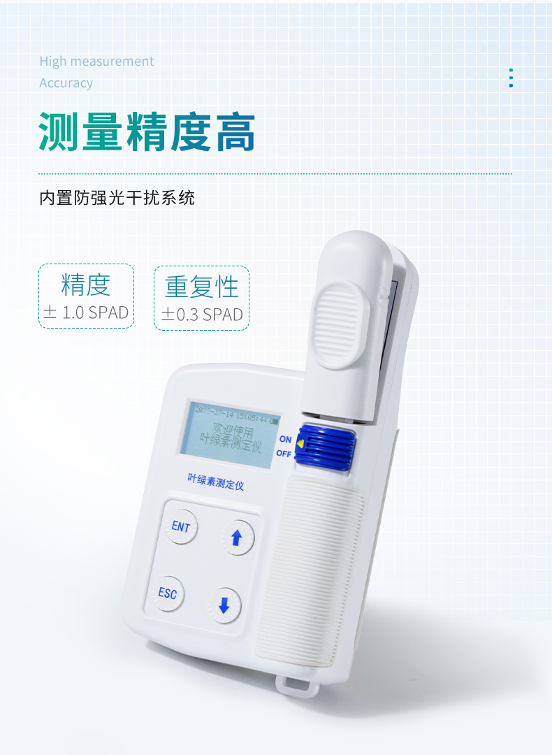 2.測量精度高(精度:± 1.0 SPAD,重復性:±0.3 SPAD)