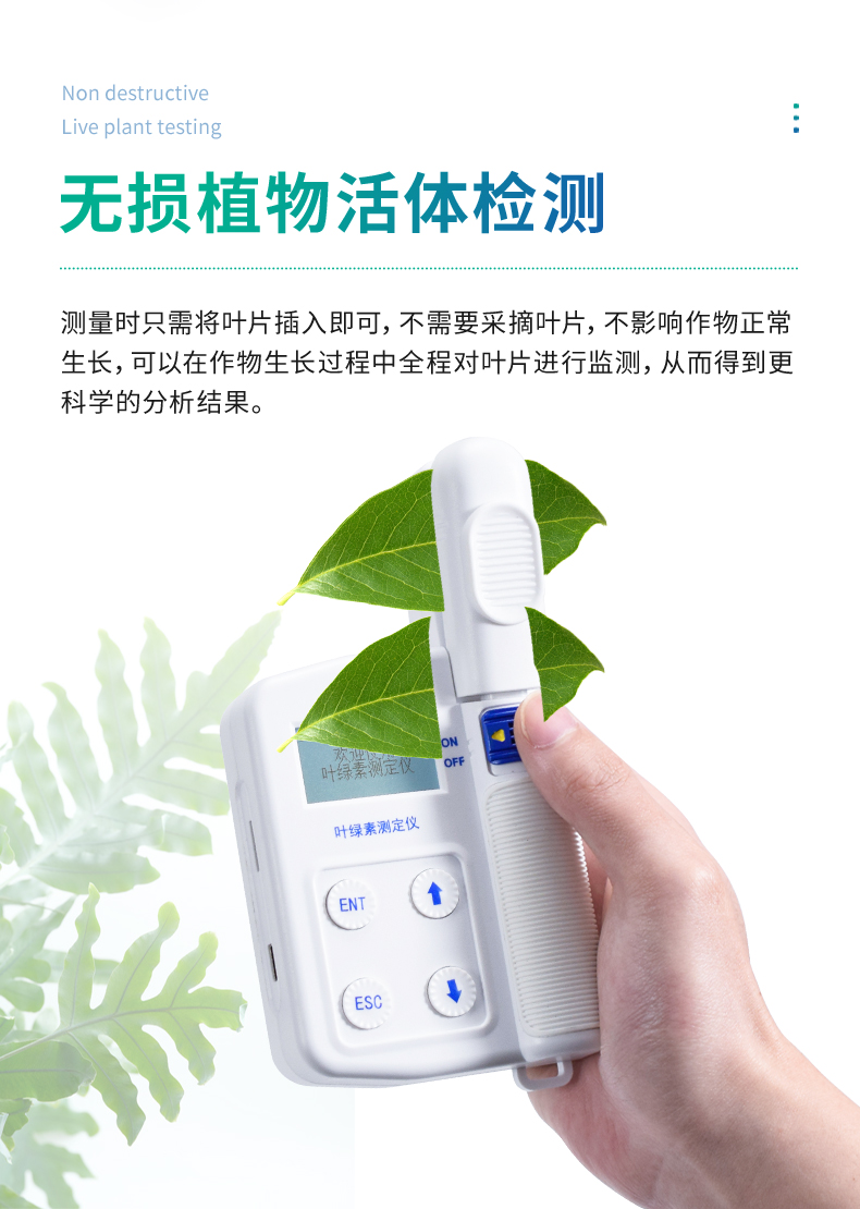 1.快速無損植物活體檢測,測量時只需將葉片插入即可,不需要采摘葉片,不影響作物正常生長,可以在作物生長過程中全程對葉片進行監測,從而得到更科學的分析結果