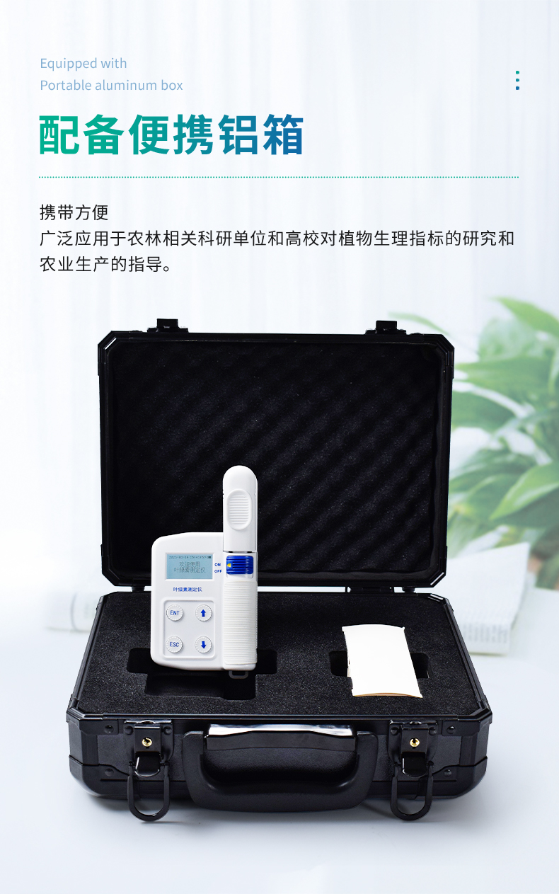 葉綠素測定儀根據葉綠素光譜吸收規律,采用兩種不同的發光管照射葉片,通過測量透過葉片的光的強度計算出葉片內的葉綠素相對含量或者綠色程度,從而為合理、適當、及時施肥提供可靠的科學依據,廣泛應用于農業、林業、植物等科學研究和生產指導。