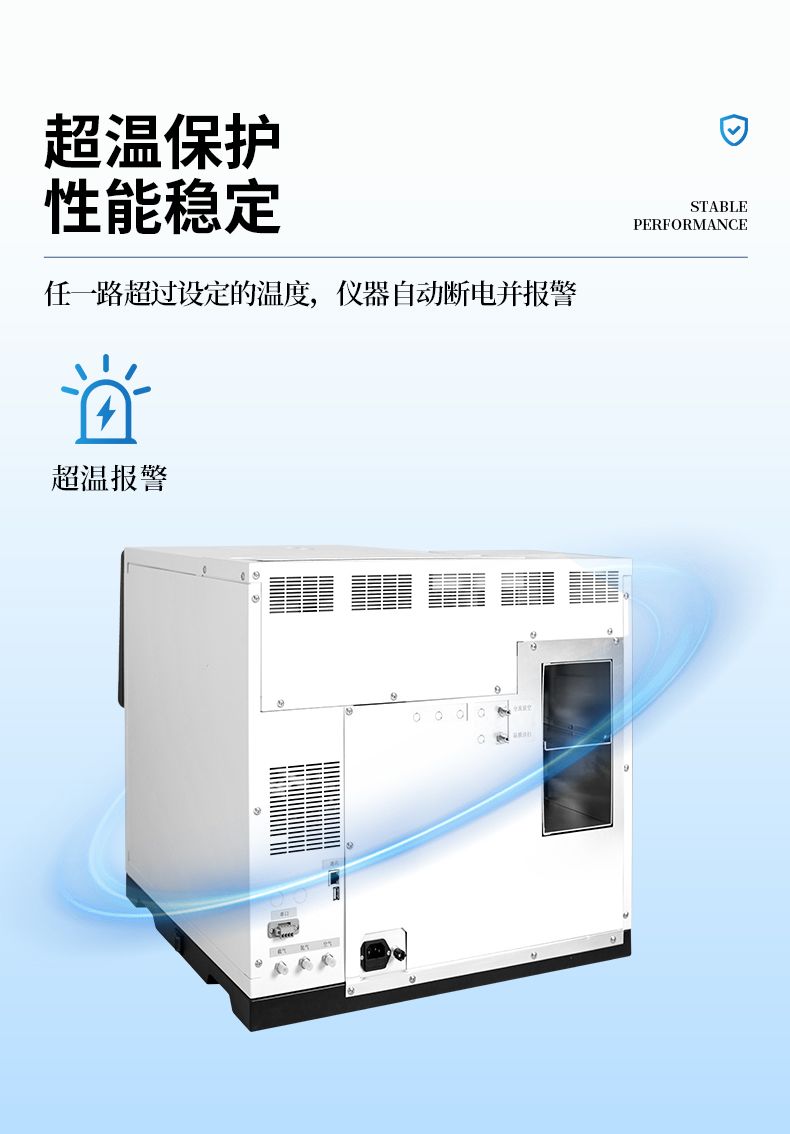 ● 載氣具有壓力保護功能,氣體壓力低 0.4mpa 時儀器自動切斷電源有效保護色譜柱使用安全。