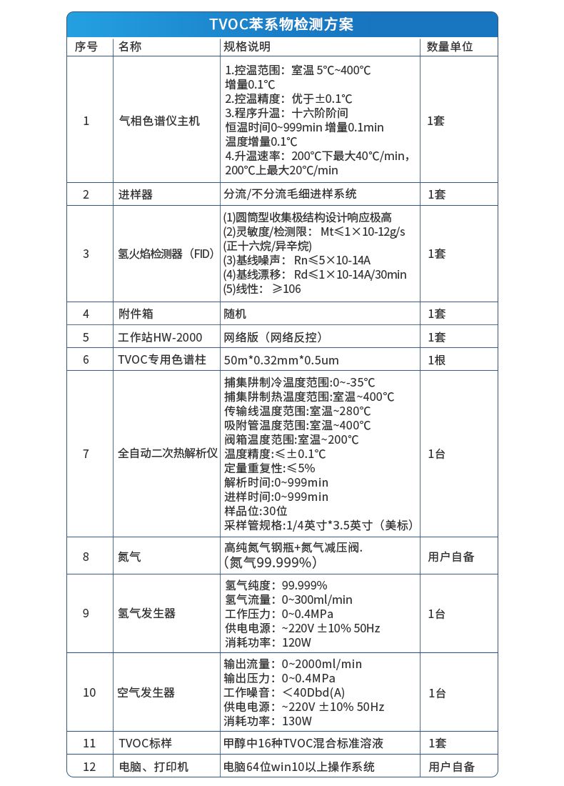 | 檢測器 | 氫火焰檢測器(FID) (1)圓筒型收集極結構設計響應極高 (2)靈敏度/檢測限: Mt≤1×10-12g/s(正十六烷/異辛烷) (3)基線噪聲: Rn≤5×10-14A (4)基線漂移: Rd≤1×10-14A/30min (5)線性: ≥106 | 2套 | ||