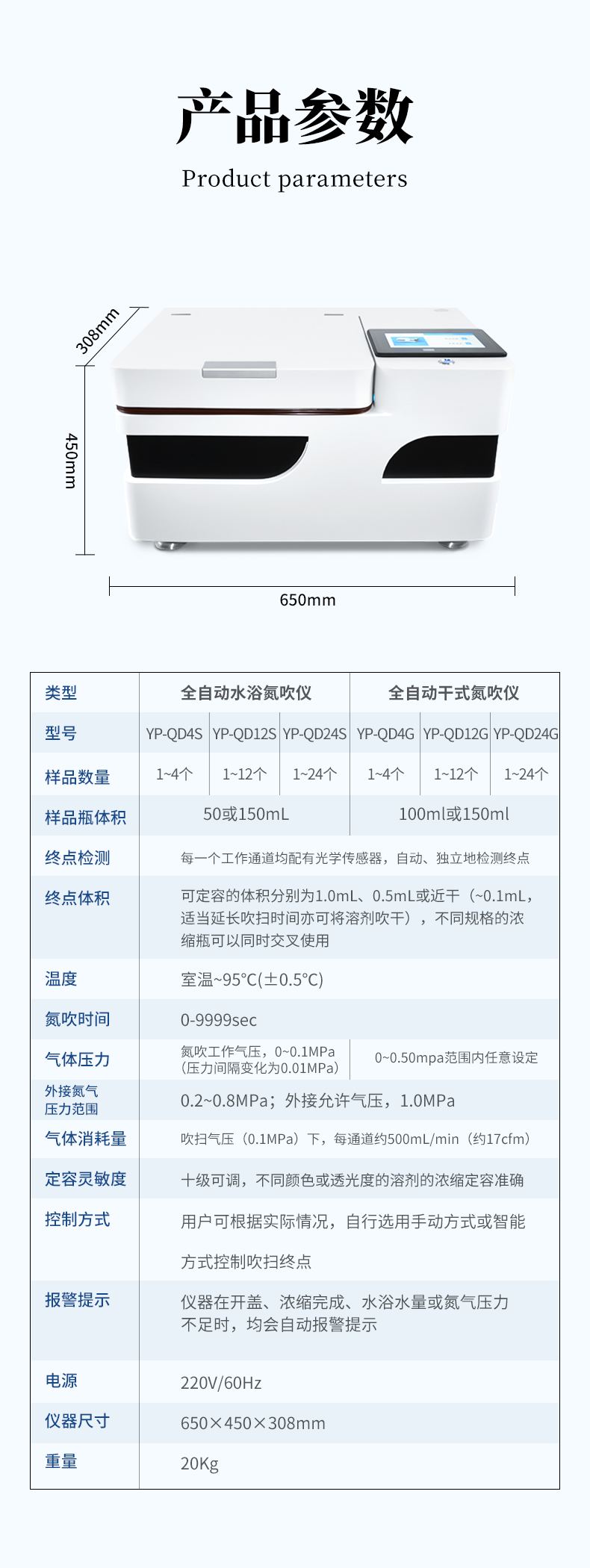 3、工作參數(shù)任意設(shè)置、控制和實(shí)時(shí)顯示:主要工作參數(shù):氮吹壓力、水浴溫度和工作時(shí)間,均可按需設(shè)置。