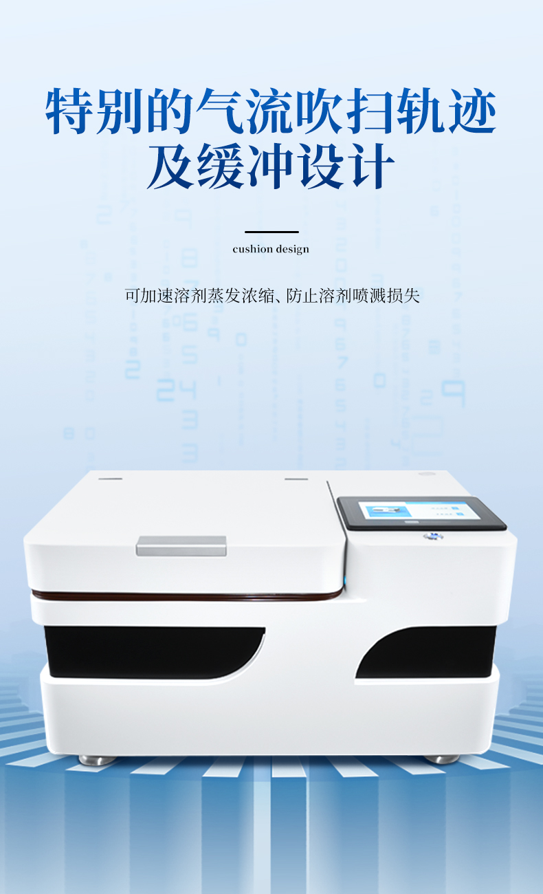 2、特別的氣流吹掃軌跡及緩沖設(shè)計(jì):可加速溶劑蒸發(fā)濃縮、防止溶劑噴濺損失;