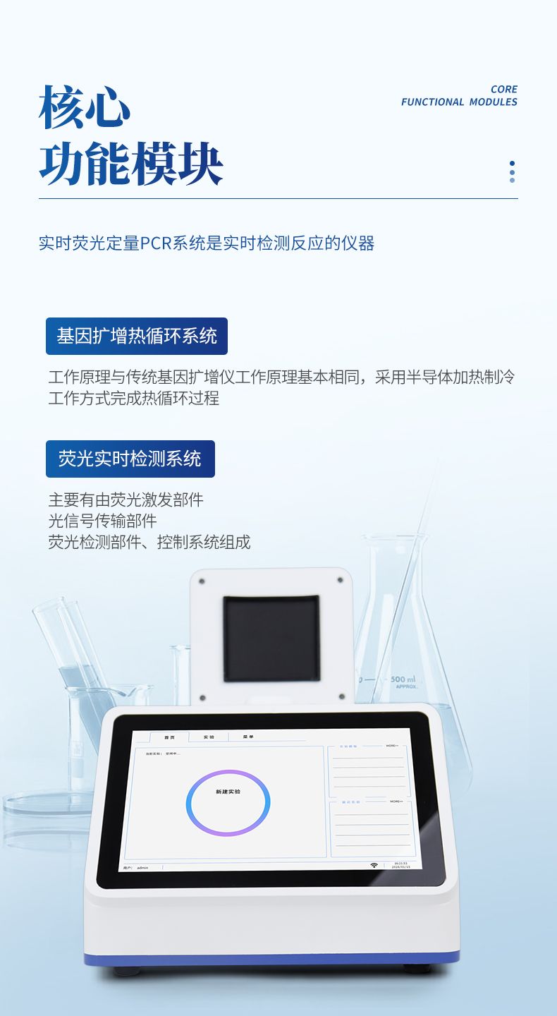 實時熒光定量PCR系統是實時檢測反應的儀器,主要由基因擴增熱循環系統、熒光實時檢測系統、微電路控制系統、計算機及應用軟件組成。其中兩個核心功能模塊:熱循環系統和熒光實時檢測系統。其中基因擴增熱循環系統工作原理與傳統基因擴增儀工作原理基本相同,采用半導體加熱制冷工作方式完成熱循環過程。熒光檢測系統主要有由熒光激發部件、光信號傳輸部件、熒光檢測部件、控制系統組成。