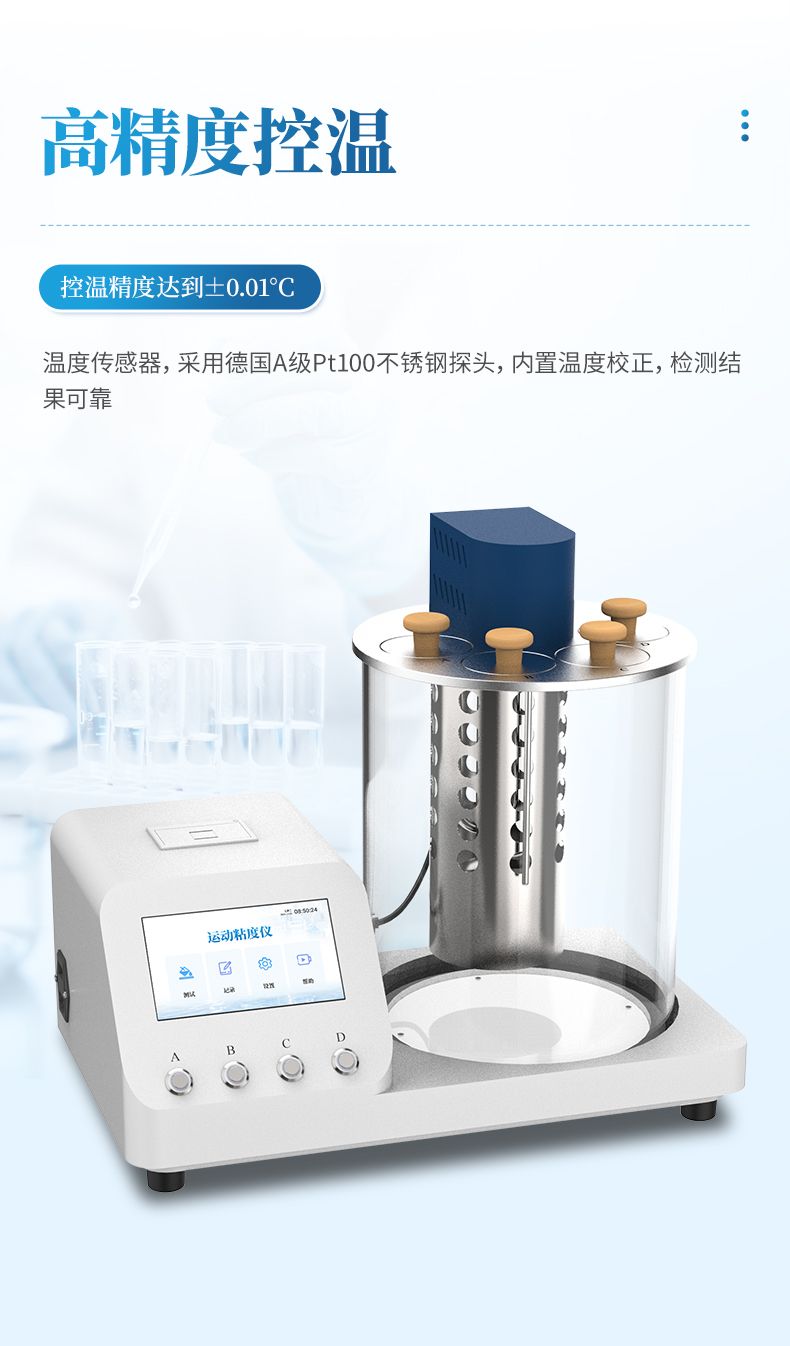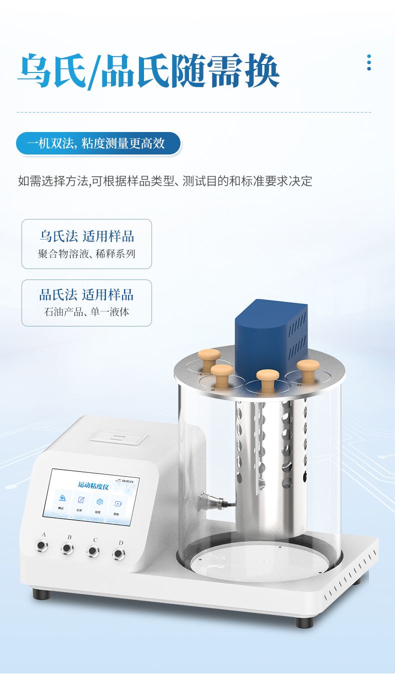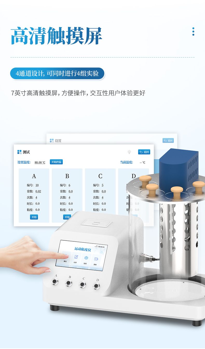 本產(chǎn)品石油產(chǎn)品運動粘度自動測定儀是依據(jù)國家標準《GB265-88石油產(chǎn)品運動粘度測定法》設(shè)計制造的專用測試儀器,適用于測定液體石油產(chǎn)品的運動粘度。本儀器具有計時試樣運動時間,自動計算運動粘度的最終結(jié)果。本方法適用于測定液體石油產(chǎn)品(指牛頓液體)的運動粘度,其單位為m2/s,通常在實際中使用為mm2/s。動力粘度可由測得的運動粘度乘以液體的密度求得。本方法是在某一恒定的溫度下,測定一定體積的液體在重力下流過一個標定好的玻璃毛細管粘度計的時間,粘度計的毛細管常數(shù)與流動時間的乘積,即為該溫度下測定液體的運動粘度。該溫度下運動粘度和同溫度下液體的密度之積為該溫度下的動力粘度。